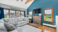 Situated on a sprawling 4-acre parcel with stunning Sand's Pond frontage, this unparalleled property is a true oasis. Just a short drive from town, this is the perfect retreat for those seeking a harmonious blend of peace, yet convenience. As you approach, you are greeted by the sight of stone walls that encircle the 2 buildings, adding a touch of charm to the landscape.