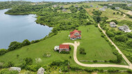 The first structure is a masterpiece of design, with an open concept kitchen that seamlessly flows into a grand room adorned with gas fireplace, expansive windows and coffered ceilings. The main floor includes the primary bedroom boasting an ensuite bathroom, walk-in closet, and French doors that open onto a small deck overlooking the serene pond. An office, dining room, pantry, and a half bathroom complete the first floor.