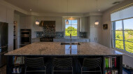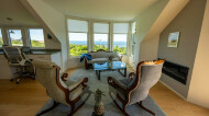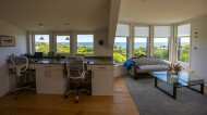 Welcome to a truly exceptional year round residence on Mohegan Trail, where innovative architecture and custom construction meets luxurious coastal living. Perfectly sited to capture sweeping Atlantic Ocean views from every room, this stunning home was thoughtfully designed with elegance, comfort, and functionality in mind. From sunrise to sunset, natural light fills the spaces, entrancing the occupants. The kitchen is a chef's dream, complete with high end appliances, custom cabinetry, a walk in pantry, and a spacious open layout that flows seamlessly into the dining and living areas. The living room, with its sleek gas fireplace, wall mounted TV, and integrated sound system is a cozy and sophisticated retreat. With four spacious bedrooms, this home easily accommodates family and guests. The primary suite is a sanctuary unto itself, offering a private viewing deck, a gas fireplace and a spa-like bath featuring a luxurious steam shower and jet tub. The versatile three season room is ideal for use as an office, playroom, den or gym. Every inch of this home exudes quality and care-from the nautilus shaped outdoor shower, to the expertly crafted stone patio and lush professional landscaping. Whether you're entertaining, relaxing, or simply enjoying the peaceful surroundings, this spectacular property offers the best of Block Island living with all of the modern amenities you could desire. A rare opportunity to own a of work of art by the sea--schedule your private showing today.