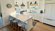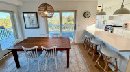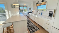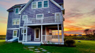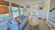Welcome to 1713 Corn Neck Road, an exceptional coastal home with a private path to Crescent Beach. This stunning property offers rare proximity to one of the East Coast's most beautiful beaches. Completely renovated in 2020, the home blends timeless design with modern luxury. Sun-filled, spacious rooms capture sweeping vistas of the great Salt Pond & the Atlantic. High-end finishes & tasteful coastal décor create an atmosphere of relaxed elegance throughout. Upon entry, you're greeted by a welcoming sitting area with sliding doors to a deckDown the hall, you'll find a full bath & a generous first-floor bedroom.The second floor features a beautiful galley kitchen with gleaming countertops & built-in appliances. The adjoining dining area opens to a wraparound covered porch, ideal for al fresco dining. Nearby, a bright, open living room offers the perfect place to unwind. Expansive sliding doors frame dramatic water views, and from here you can step onto a sunny porch or a shaded sitting area to take in breathtaking sunsets. The third floor hosts a primary suite with walk-in closet, a spacious bath, & spectacular ocean views. Down the hall is a 3rd ensuite bedroom with abundant closet space & stunning views. This home is part of the Crescent Beach Cottages Assoc., 21 freestanding homes set on 7.09 acres, with an additional 5.39 acres of common land. Conservation areas & protected open space surround the property to the west and north, while Crescent Beach lies just to the east.