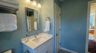 Enjoy panoramic views of the Atlantic Ocean from inviting porches and a spacious deck-the perfect spots to relax in the ocean breezes and take in both sunrises and sunsets. Inside, on the first level there is a comfortable den, guest bedroom and renovated bath and a stack washer/dryer. The second level features a well appointed kitchen with top of the line appliances and a cozy living/dining area with access to a two sided porch. The primary bedroom with spacious, renovated bath is on the top floor with a small balcony for viewing the Great Salt Pond. A partially finished basement provides extra living or recreation space for family fun.