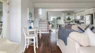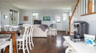 Easy Breezy is the only single family home in the Seawinds neighborhood on Block Island, offering privacy with the ease of association living. Located minutes from town, beaches, dining, recreation, and ferry access, this four bedroom, three bath property combines comfort, convenience, and investment appeal in one of the Island's most accessible settings.The classic shingle style exterior and covered front porch open to bright living and dining spaces that flow into a well equipped modern kitchen.The layout supports everyday living and entertaining, with natural light and a seamless indoor and outdoor connection.Air conditioning and partial Island views enhance comfort and setting. The first level includes a bedroom and full bath, ideal for guests, home office use, or single level living. Upstairs offers additional bedrooms and baths, including a distinctive double shower bath design. Outdoor space includes a private area off the kitchen for grilling and relaxing, plus a fenced yard providing privacy and usable space for pets or play, a rare feature this close to town.Scenic roads and walking routes nearby make it easy to enjoy the natural beauty that defines Island living.A full basement provides storage and future finishing potential for additional living space, and the garage offers excellent storage for beach gear, bikes, and seasonal equipment.Strong rental history adds proven income potential, making this an ideal Island retreat, year round home, or investment property.
