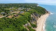 This waterfront property offers an increasingly rare opportunity to own along Block Island's striking southern shoreline. With expansive views of the Atlantic and direct proximity to the Mohegan Bluffs and Vail Beach, the setting is both breathtaking and peaceful. The 2.26-acre lot is home to a residence that has been cherished by the same family who originally designed and built it, now ready to be passed on to new owners. The home is being sold as-is and will require renovation, offering a chance to restore or completely reimagine a classic Island escape. Inside, a dramatic floor-to-ceiling brick fireplace serves as the heart of the main living area and continues through to a second fireplace in the lower level. A built-in brick cooking fireplace adds rustic charm to the kitchen, offering a rare focal point for gathering and entertaining. Expansive windows, vaulted ceilings, and natural materials create an immediate connection to the landscape, while generous outdoor space frames the ever-changing ocean beyond. A full home inspection is available upon request, providing helpful insight for those ready to bring new life to this truly special offering. Whether you're seeking a personal retreat or an investment in one of Block Island's most desirable coastal locations, this is a rare opportunity to create something unforgettable.